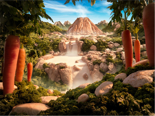 Inspirado em artistas como Salvador Dali e Patrick Woodrofe, o fotógrafo britânico Carl Warner cria cenários fantásticos à partir de alimentos usados no nosso dia-a-dia.