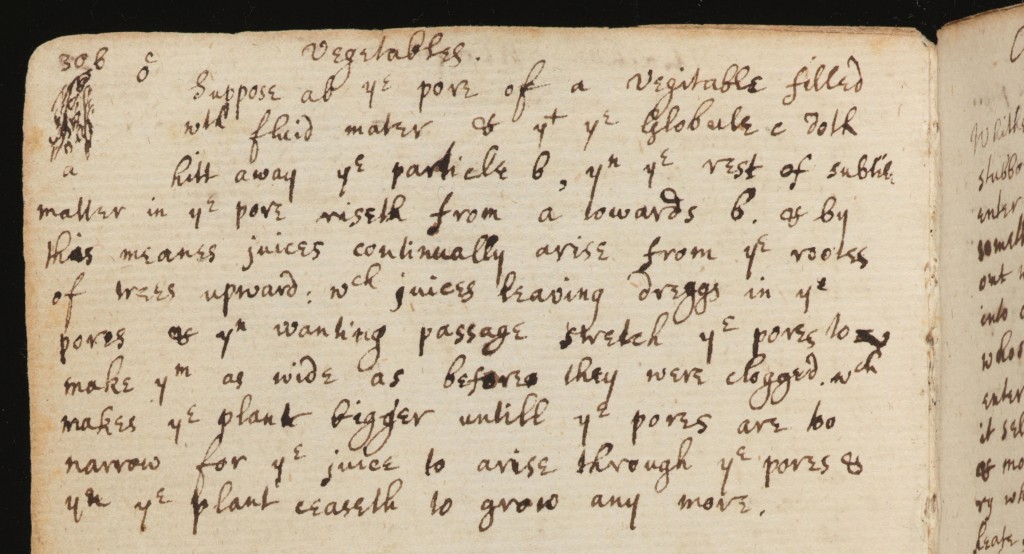 O físico inglês ficou para sempre conhecido pela sua obra-prima Principia, de 1687, na qual enunciava as três leis do movimento. Escrito mais de duas décadas antes, o seu caderno de estudante é um acervo de textos sobre o mundo natural, mostrando uma curiosidade que disparava para todos os lados. O texto sobre a circulação de seiva está ao lado de textos como “Atracção eléctrica & filtração ou Dos meteoros”, numa secção denominada “Certas questões filosóficas”.