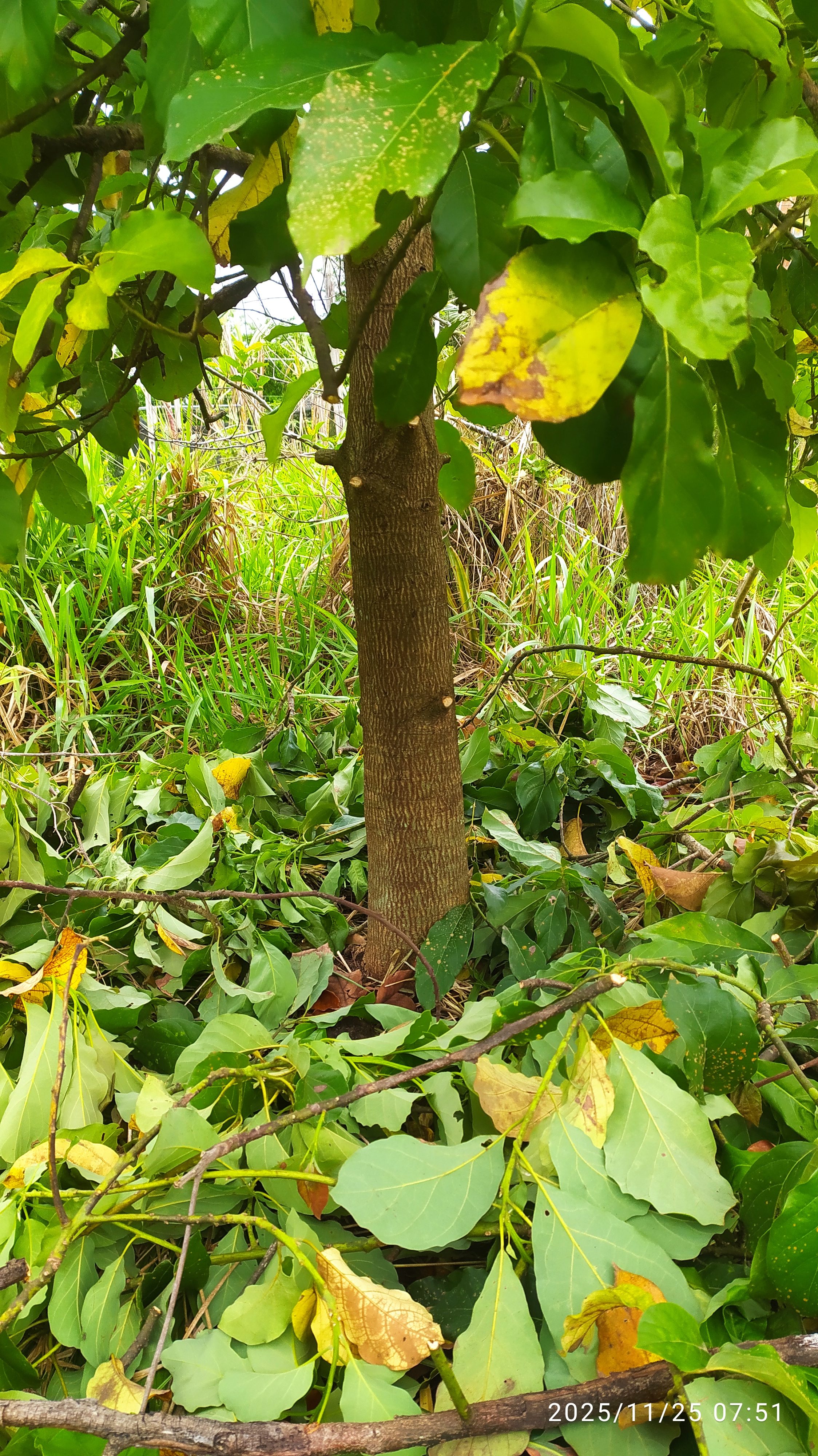 O primeiro abacateiro que plantei no sitio recebeu podas de formação. Retirei os galhos que estavam batendo no chão.